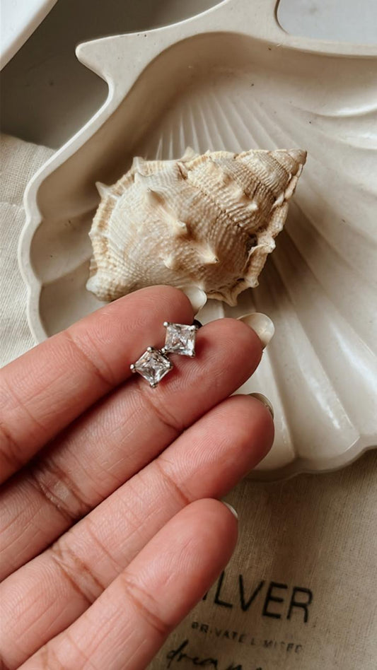 Cz Square South Screw 6MM Studs 925 Sterling Silver Earrings