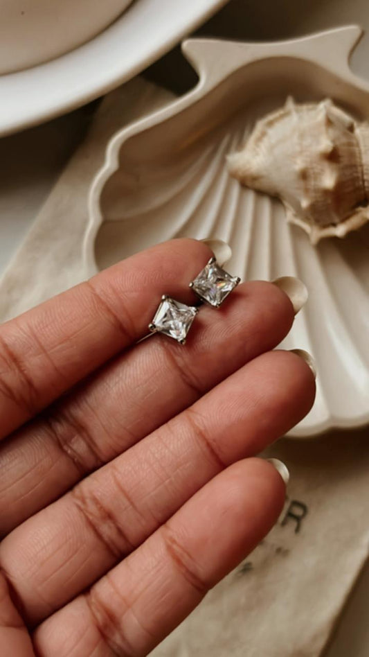 White Cz Square Cut Statement 7MM Studs 925 Sterling Silver Earrings
