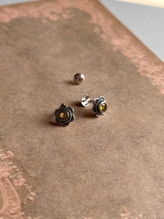 South screw yellow cz flower 925 Sterling Silver studs
