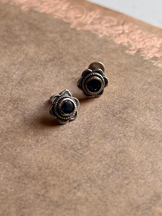South screw blue cz flower 925 Sterling silver studs