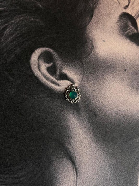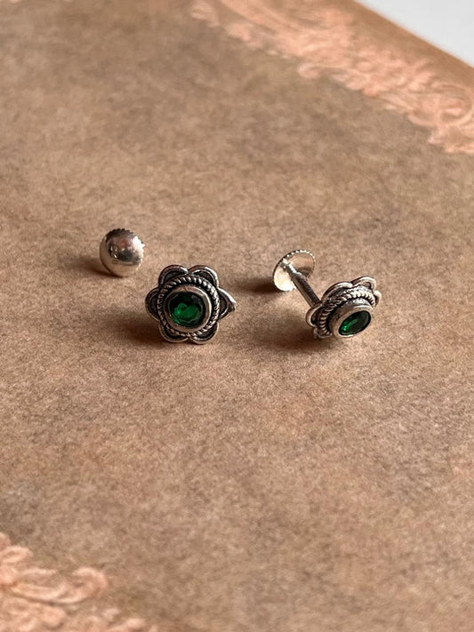 South screw green cz flower 925 Sterling silver studs