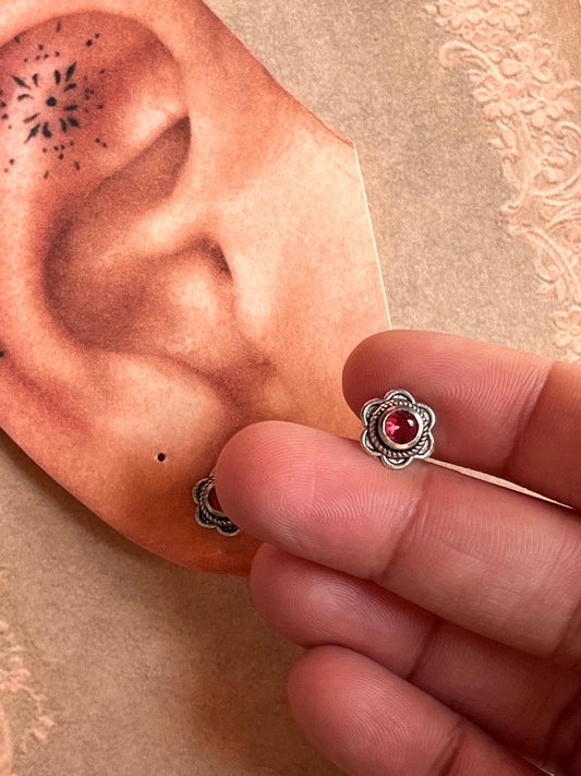 South screw pink cz flower 925 Sterling silver studs