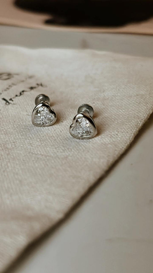 Heart CZ 6mm covered South Screw Studs 925 Sterling Silver Earrings