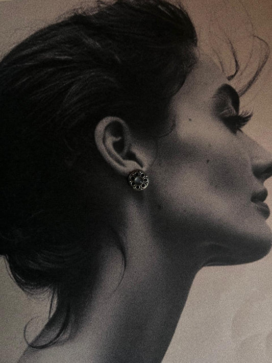 Black Onyx Vintage Cushion Cut 925 Sterling Silver Earrings