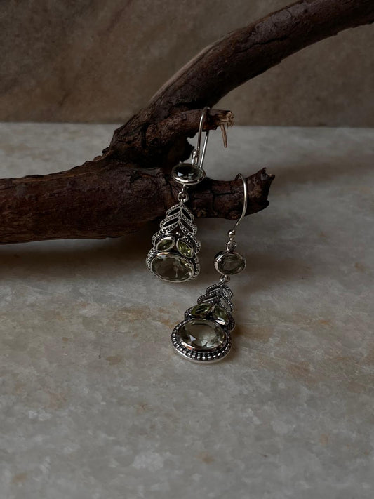 Peridot & Green Amethyst Vintage Style Statement 925 Sterling Silver Earrings