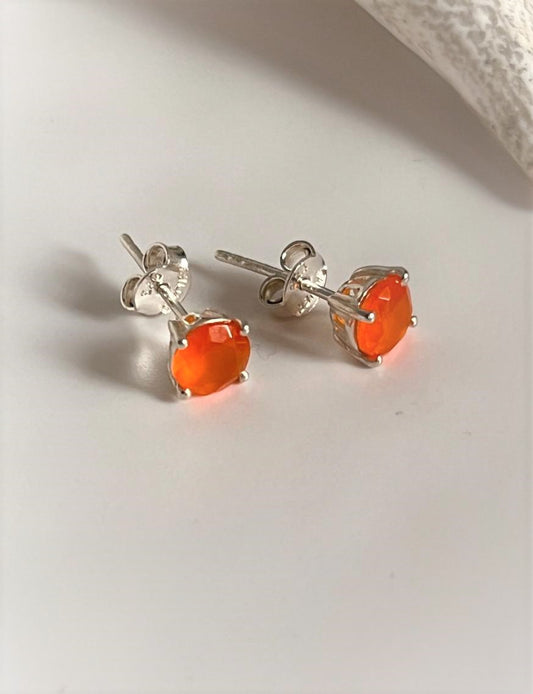 Carnelian Round Studs 6mm 925 Sterling Silver Earrings