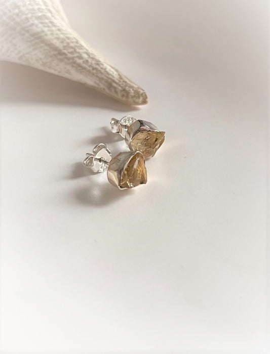Citrine Raw Uncut studs 925 Sterling Silver Earrings