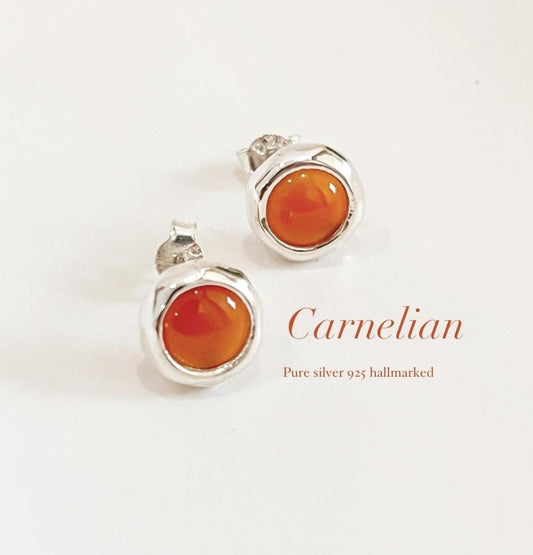 Carnelian Cab Stone Round Stud 925 Sterling Silver Earrings