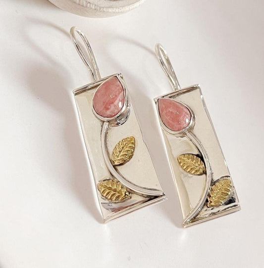 Rhodochrosite Tulip Flower 925 Sterling Silver Fusion Earrings
