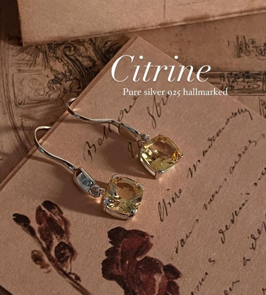 Citrine Square Cut Hook 925 Sterling Silver Earrings