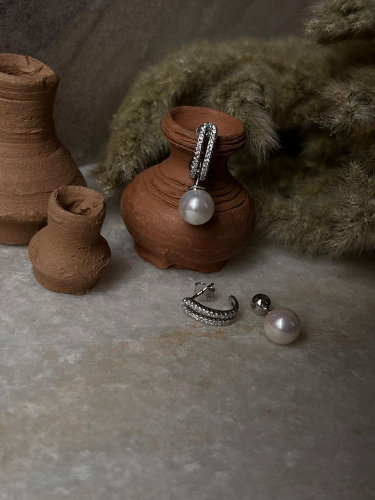 Fresh Water Pearl Cz 2 in 1 925 Sterling Silver Earrings