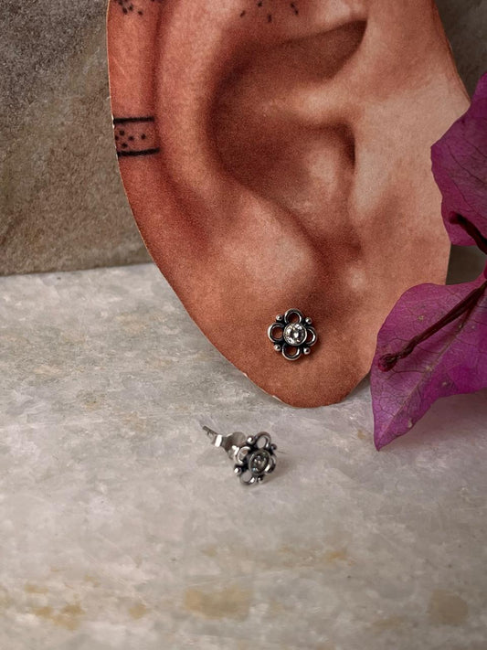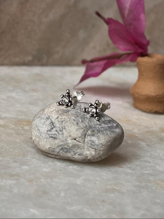 Antique White Cz Stone Studs 925 Sterling Silver Earrings