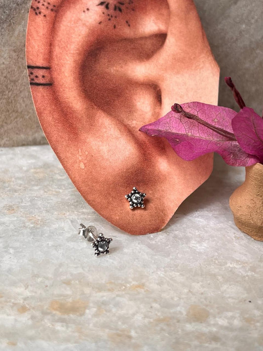 Star White Cz Stone Studs 925 Sterling Silver Earrings