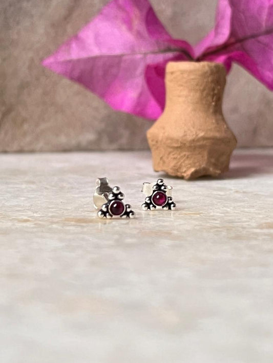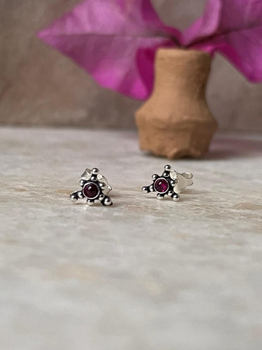 Teekona Pink Cz Stone Studs 925 Sterling Silver Earrings
