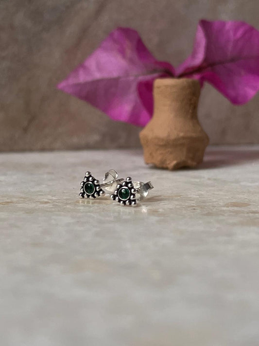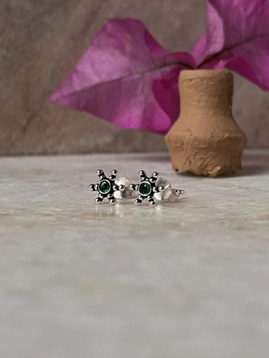 Rawa Flower Green Cz Stone Studs 925 Sterling Silver Earrings