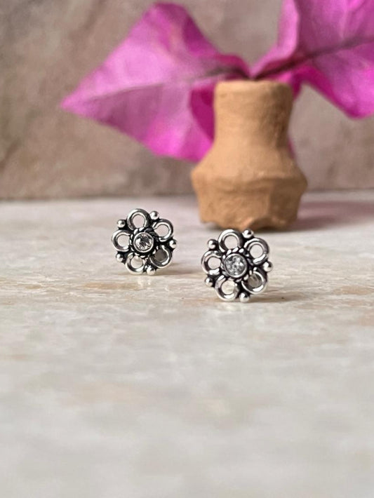 Flower White Cz Stone Studs 925 Sterling Silver Earrings