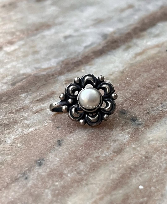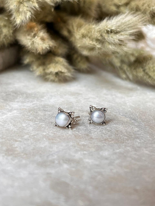 Fresh Water Pearl Boho Rawa Round Studs 925 Sterling Silver Earrings