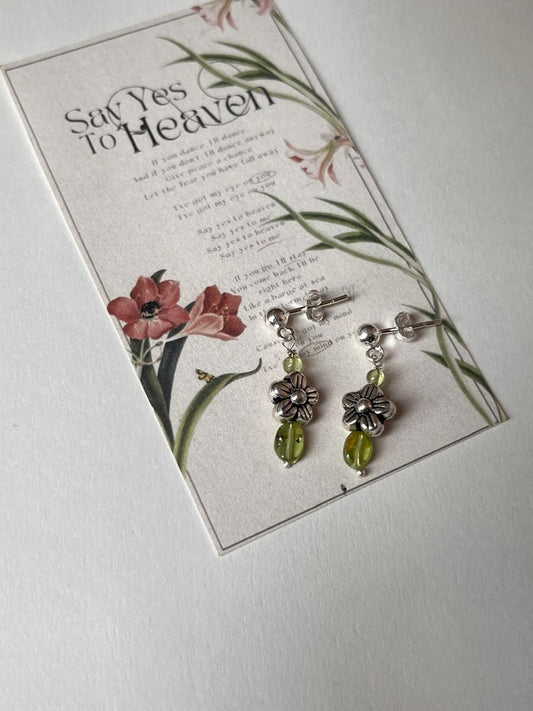 Peridot & Silver Flower Beads Handcrafted Studs 925 Sterling Silver Earrings