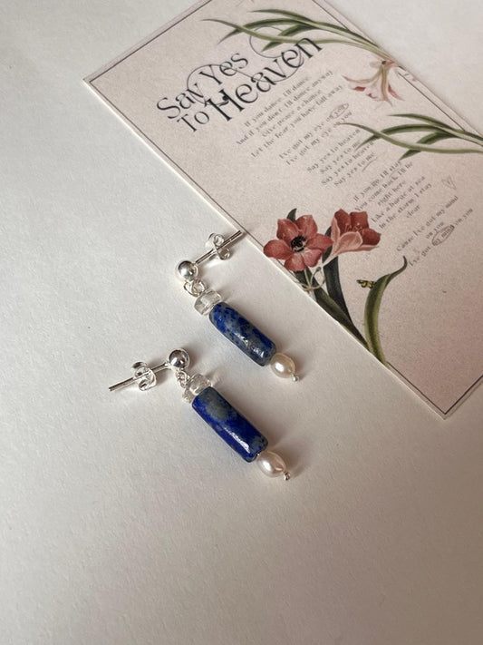 Lapis Lazuli, Clear Quartz & Fresh Water Pearl Handcrafted Studs 925 Sterling Silver Earrings