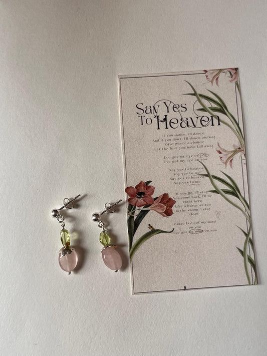Rose Quartz Tumble Flower & Peridot Handcrafted Studs 925 Sterling Silver Earrings