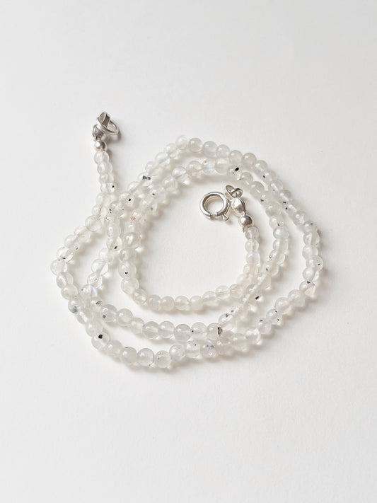 Rainbow Moonstone Plain Round 925 Sterling Silver Necklace