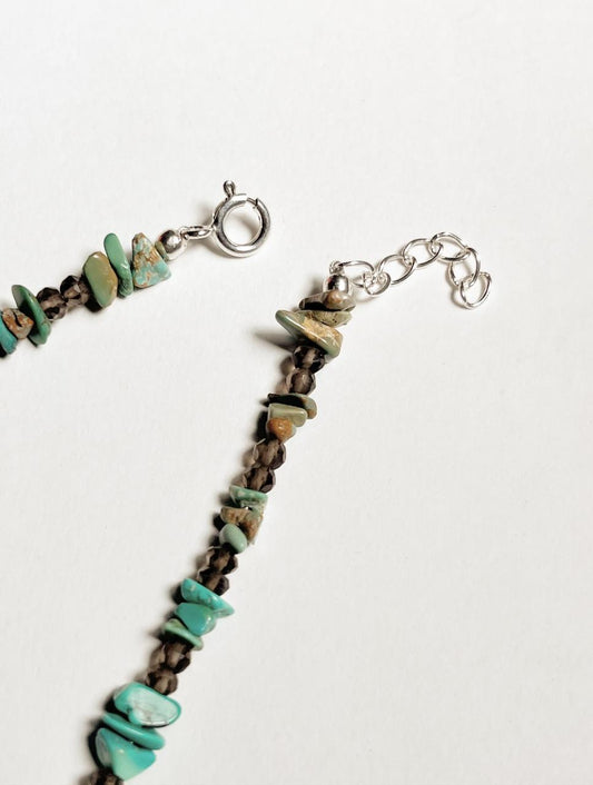 Copper Turquoise & Smokey Quartz Tribal 925 Sterling Silver Boho Choker Necklace