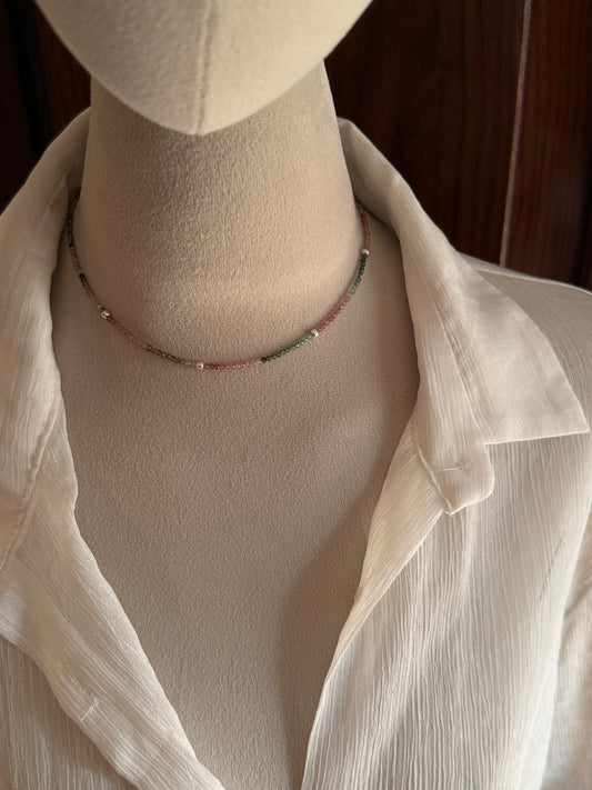 Multi Tourmaline 2MM Crystals & Silver Balls 925 Sterling Silver Necklace