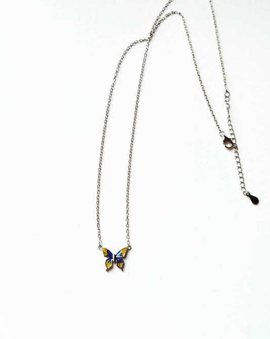Enamelled Mystic Butterfly 925 Sterling Silver Necklace