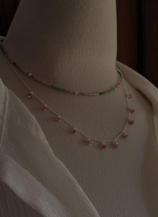 Pink Tourmaline & Fresh Water Pearl 925 Sterling Silver Choker Necklace