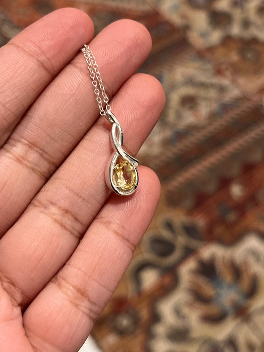 Citrine Sunshine With Chain Attached 925 Sterling Silver Necklace