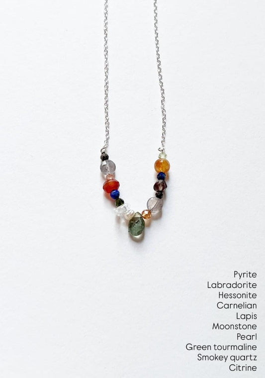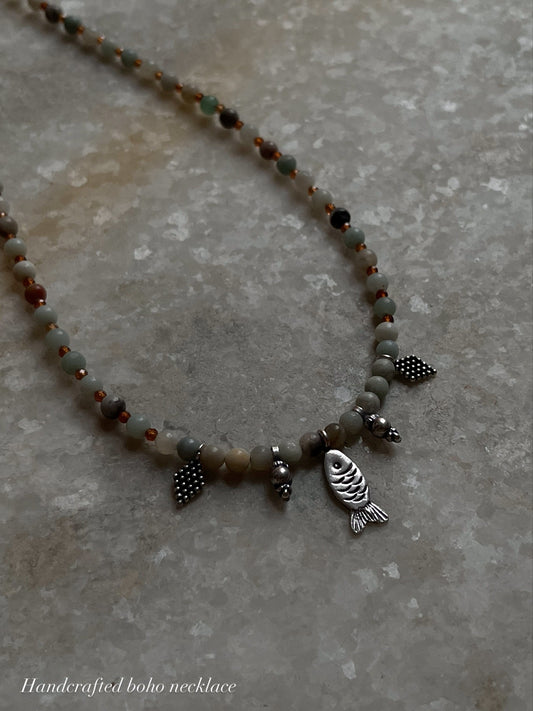 Matsya / Fish Amazonite & Hessonite Boho Choker Handcrafted Sterling Silver 925 Necklace