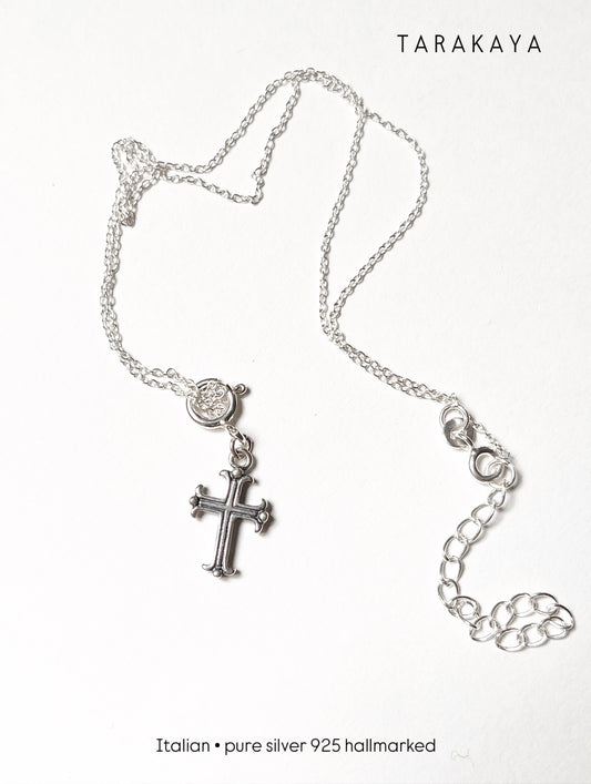 Vintage Small Cross Italian 925 Sterling Silver Necklace