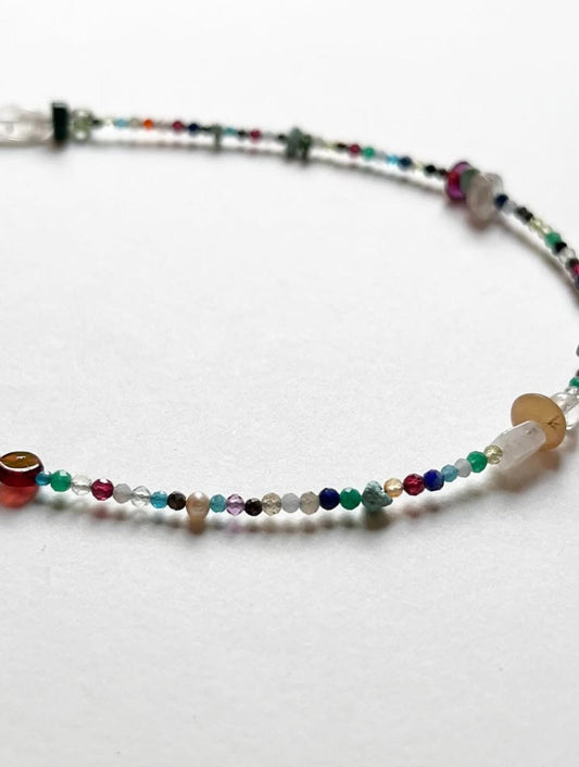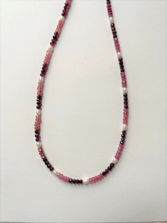 Garnet, Pink Tourmaline & Fresh Water Pearl Boho Choker Handcrafted Sterling Silver 925 Necklace