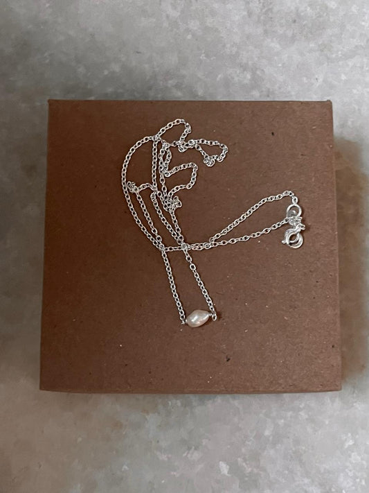 Fresh Water Pearl Minimal Handcrafted 925 Sterling Silver Necklace