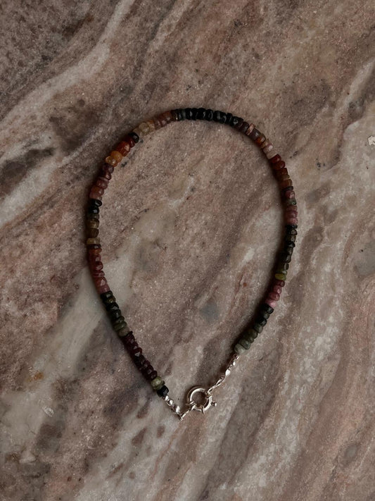 Multi Tourmaline Beads 5-6 mm Natural Crystal 925 Sterling Silver Choker Necklace