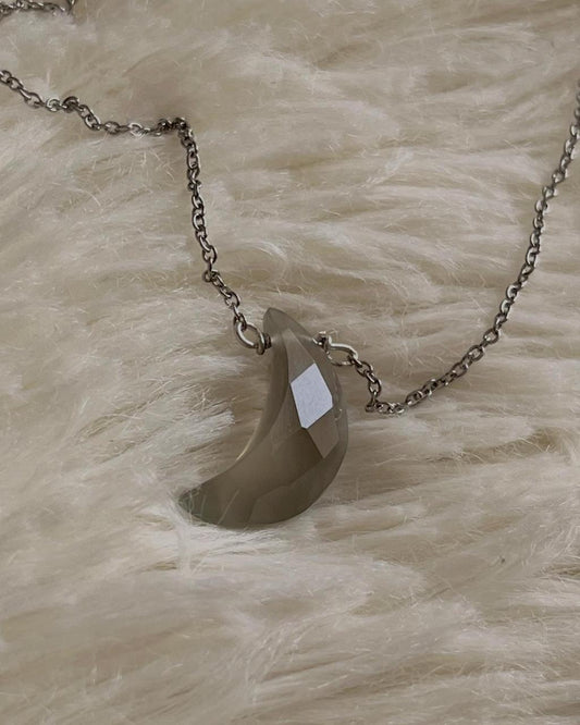 Smokey Quartz Crescent Moon Crystal 925 Sterling Silver Necklace