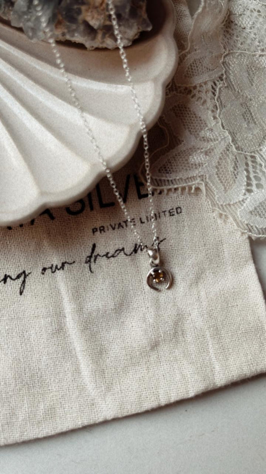 Citrine Small Crescent Moon 925 Sterling Silver Necklace