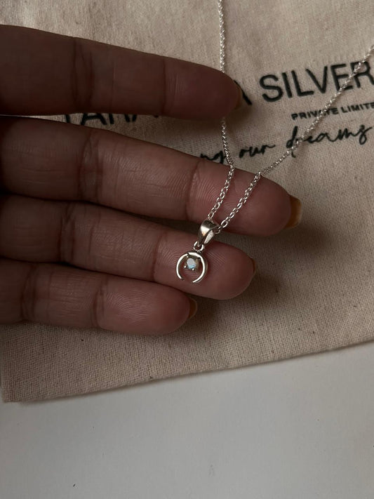 Blue Topaz Small Crescent Moon 925 Sterling Silver Necklace