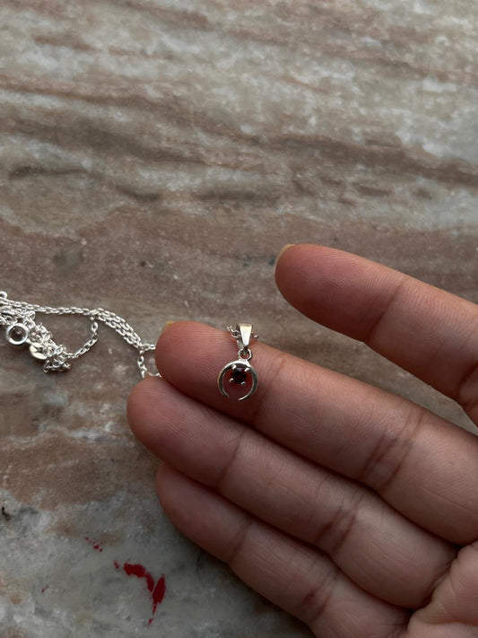 Garnet Small Crescent Moon 925 Sterling Silver Necklace