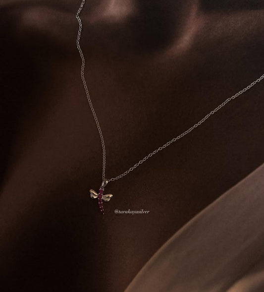 Ruby Lab Grown Dragonfly 925 Silver Necklace & Earrings Set