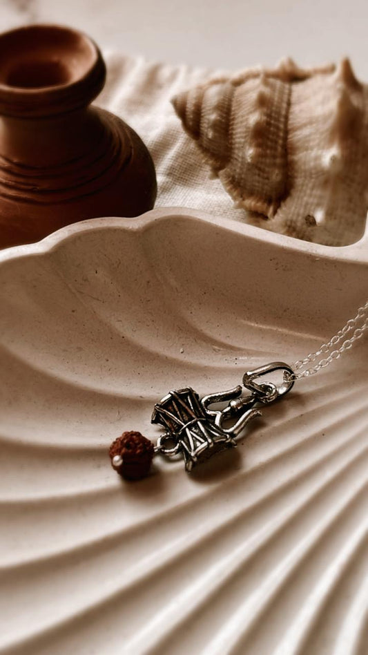 Trishul/ Damru/ Rudraksh 925 Sterling Silver Necklace
