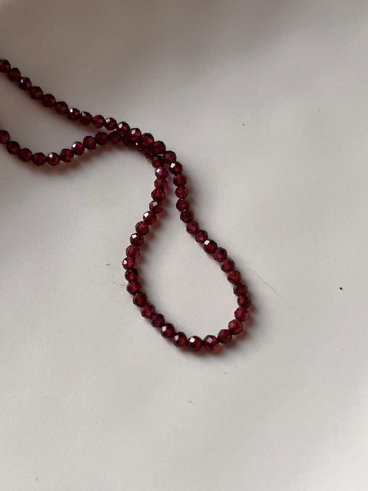 Garnet Round faceted 2MM Natural Crystal 925 Sterling Silver Necklace