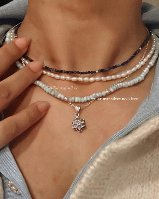 Natural Larimar Crystal 4-5MM Boho 925 Sterling Silver Necklace