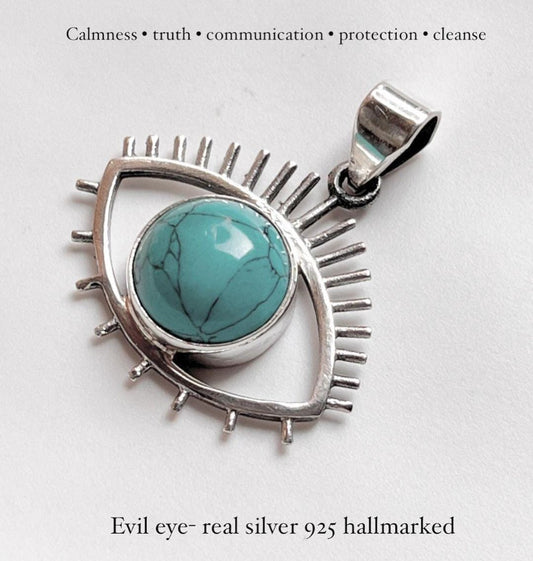 Faux Turquoise Evil Eye 925 Sterling Silver Pendant