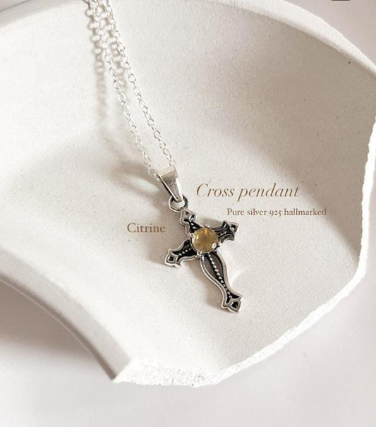 Citrine Cross Vintage 925 Sterling Silver Pendant