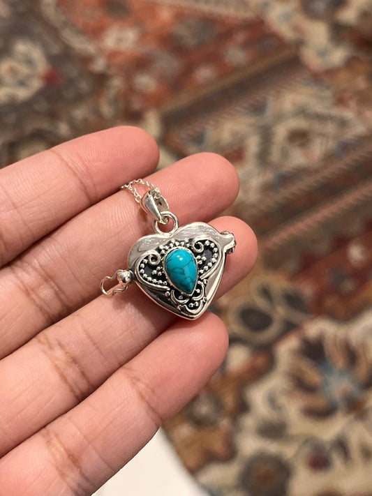Faux Turquoise Vintage Storage Heart 925 Sterling Silver Pendant