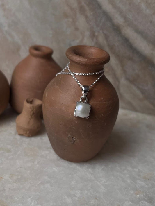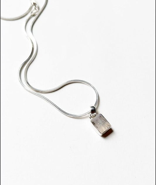 Moonstone Rectangle 925 Sterling Silver Unisex Pendant