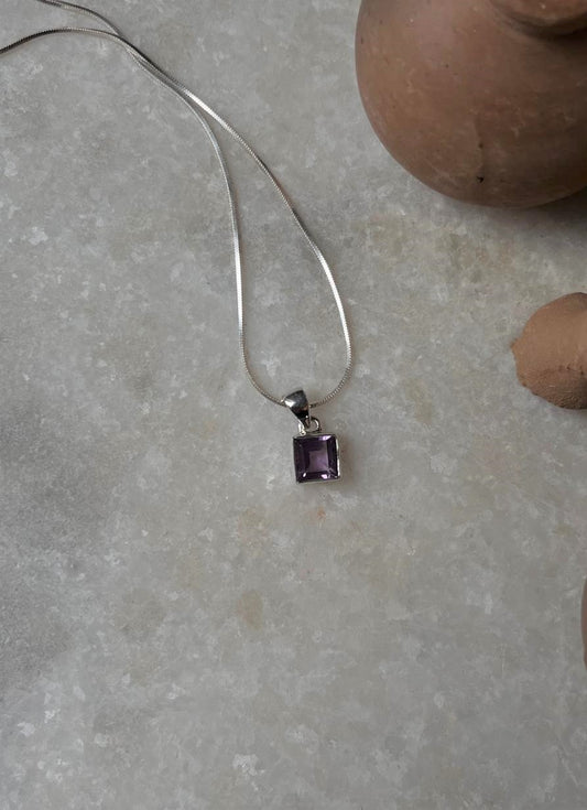 Amethyst Square Cut 925 Sterling Silver Unisex Pendant