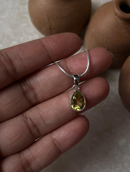 Lemon Quartz Pear / Drop 925 Sterling Silver Unisex Pendant