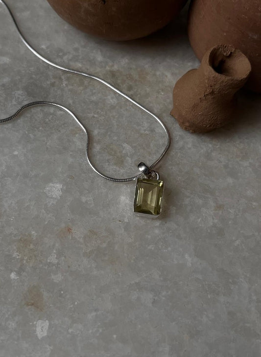 Lemon Quartz Rectangle 925 Sterling Silver Unisex Pendant